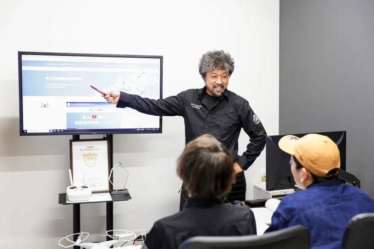 ドローンライセンスや業界の情報はもちろん、業種ごとにメジャーなドローンの情報や特徴も把握し、常に新機種にも触れているインストラクターから情報を得られるスクール。